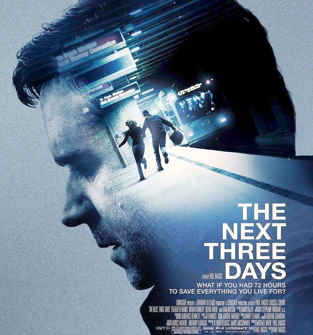 The Next Three Days 73 2 h 7 min 2010 13 Russell Crowe stars as a family man with an ideal life who finds his world turned. The Next Three Days Movie 2010. The Next Three Days is a 2010 American action thriller film written and directed by Paul Haggis and starring Russell Crowe and Elizabeth Banks. Hotshot Washington lawyer Robert Dean becomes a victim of high-tech identity theft when a hacker slips an incriminating video into his.